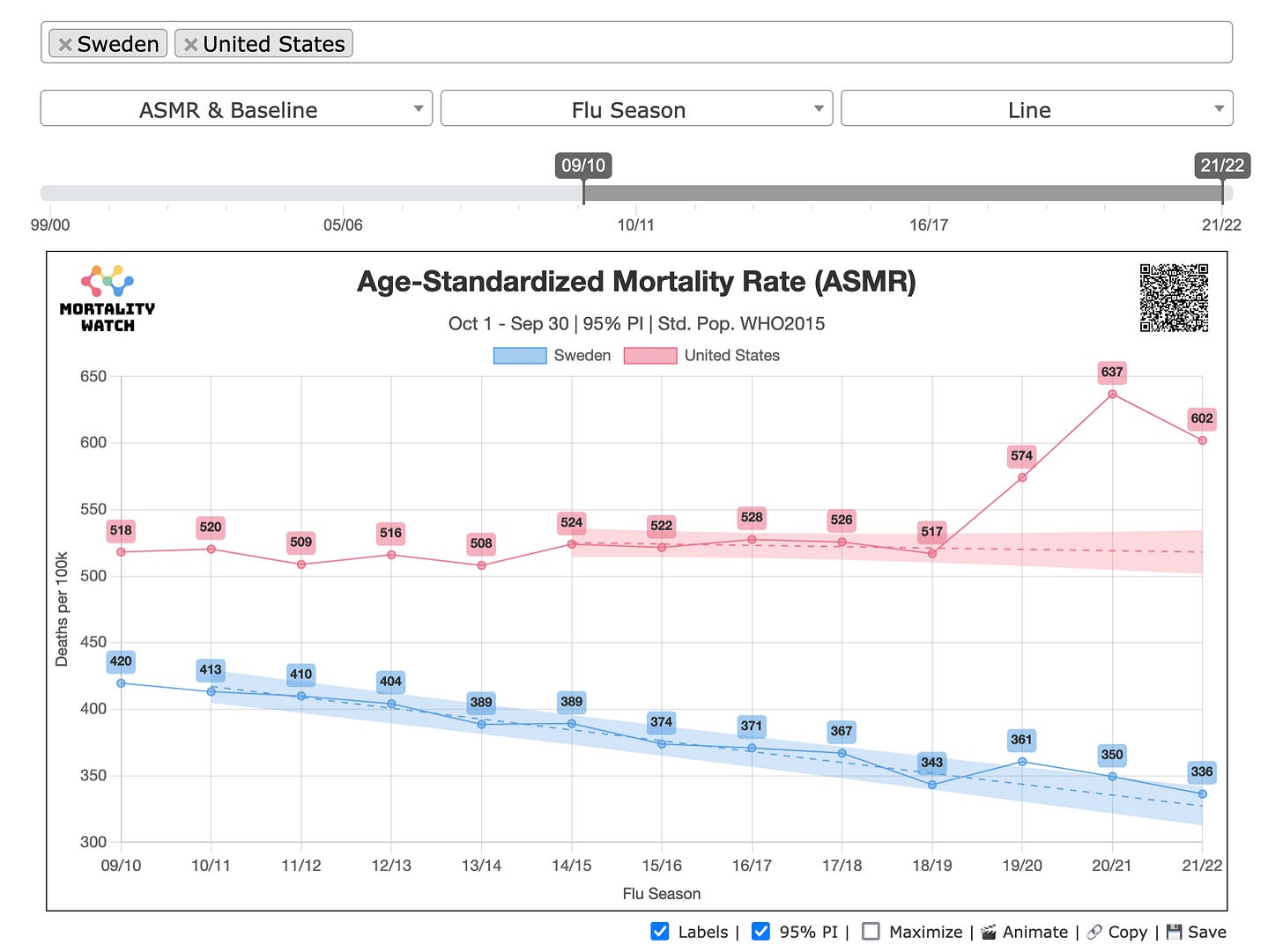 I’ve been working on a new website, and data project. You can find it at https://www.mortality.watch.