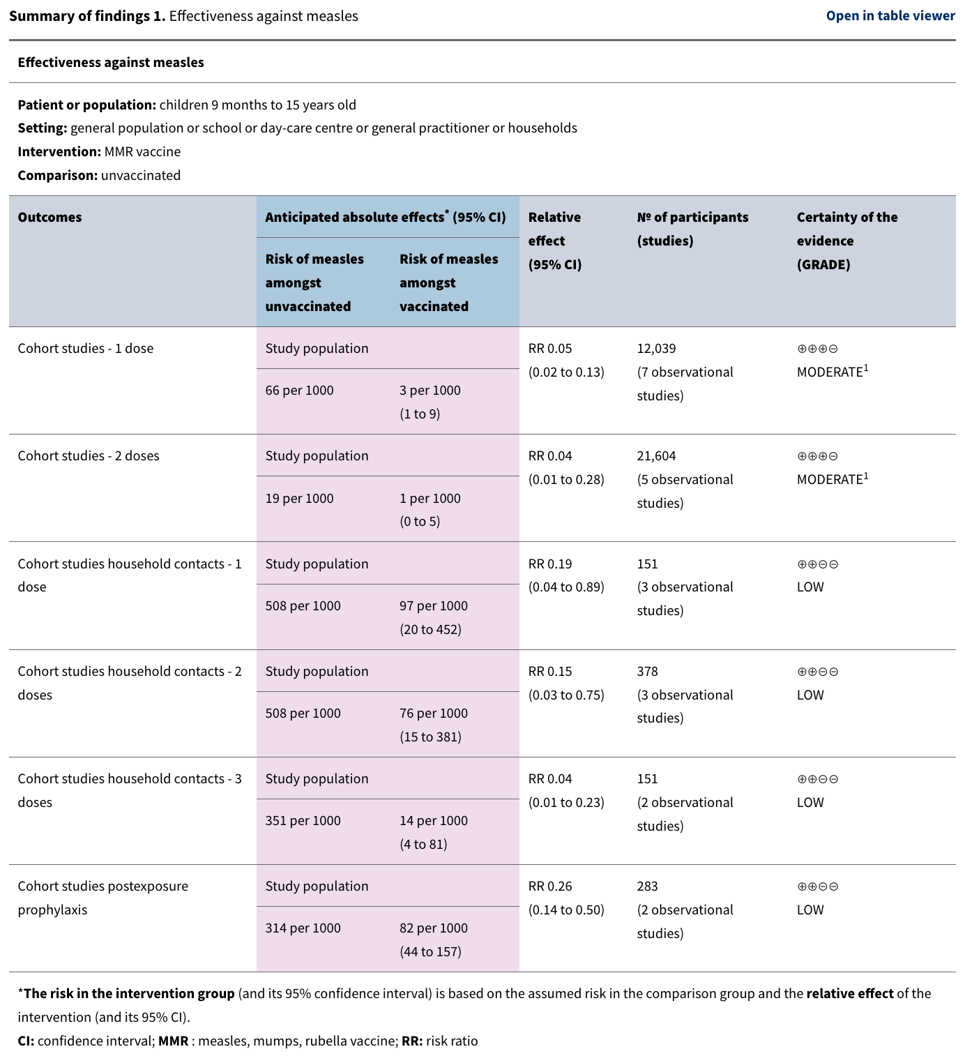 No randomized placebo-controlled trials for measles vaccination appear to exist. The renowned Cochrane Institute, while assessing measles vaccination as effective, rates the evidence as only low to moderate certainty, relying solely on observational studies rather than the gold-standard placebo-controlled trials.