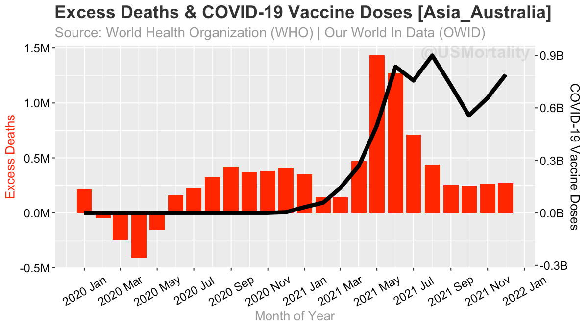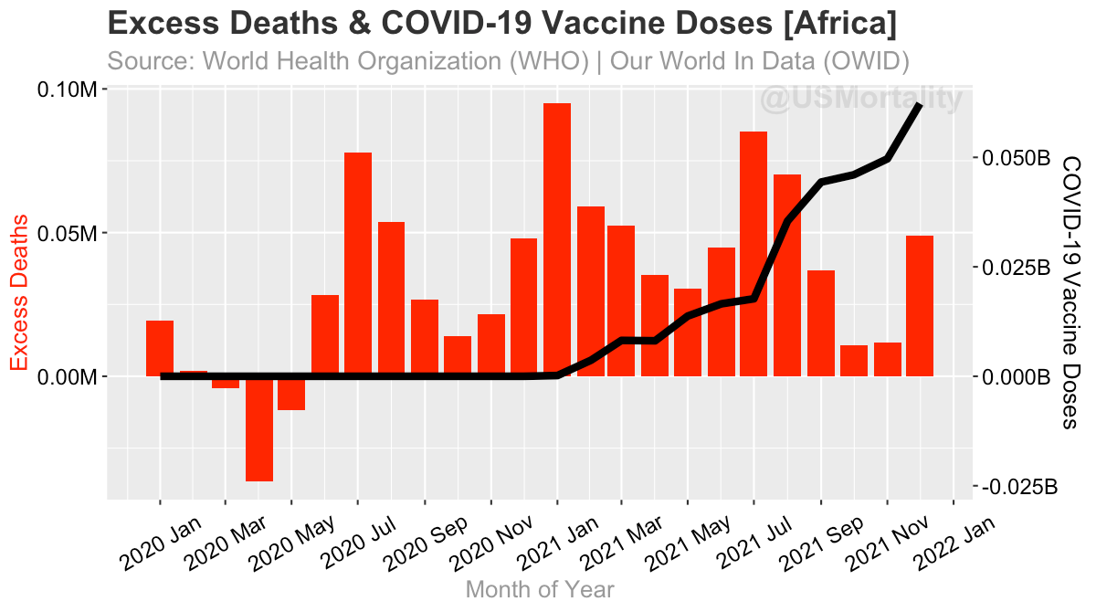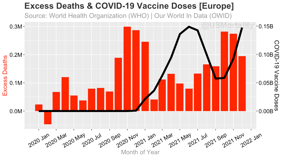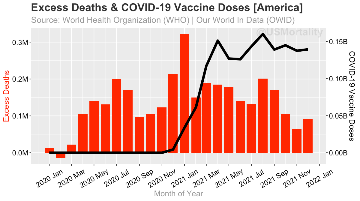 The vaccines have clearly not ended the excess deaths, and their correlation to peaks of excess deaths is striking.