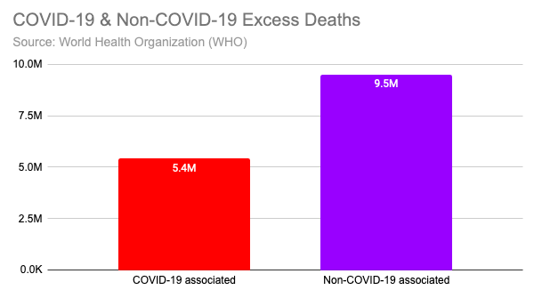 COVID-19 associated deaths only made up 1/3 of global excess deaths.