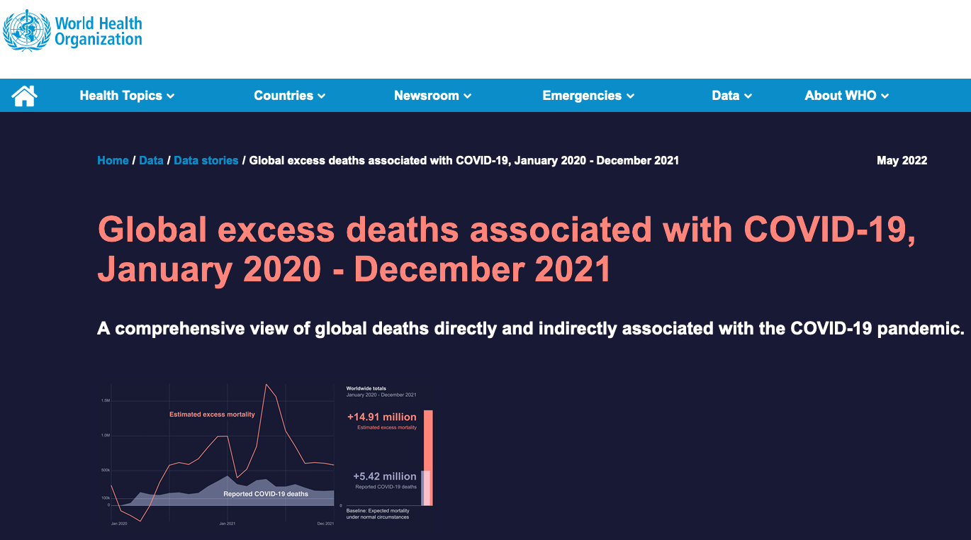 WHO reports there have been 5.4M COVID-19 associated deaths, with a total of 14.9M deaths for the years of 2020 & 2021.